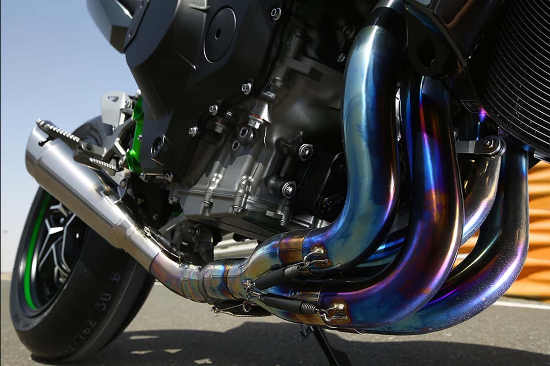 Sie sollte und wollte nie ein Motorrad für die Straße oder gar den Alltag sein. Sie sollte zeigen, was Kawasaki mit der hauseigenen Kompressortechnik aus einem Motor holen kann. 310 PS holt der 998-Kubik-Vierer bei 14.000 Touren raus und schiebt 165 Nm bei 12.500/min auf die Welle. Mit Ram-Air sind sogar 326 PS drin. Solche Leistungswerte sind ohne den kompletten Verzicht auf Abgasreinigung und Schalldämmung nicht zu stemmen. Entsprechend wird die H2R seit je her ohne Straßenzulassung verkauft und ist selbst für die Rennstrecken Deutschlands zu laut – und sind wir ehrlich: zu stark.