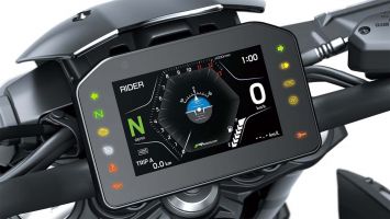 Neuer Quickshifter ist Standard am 6-Gang-Getriebe der neuen Kawasaki Z 900 sowie die neuen elektronischen Drosselklappen mitsamt den Fahrmodi "Road", "Sport", "Rain" und "Rider" (persönlich programmierbar). mit praxisgerechter und schräglagensensibler Schlupfregelung.