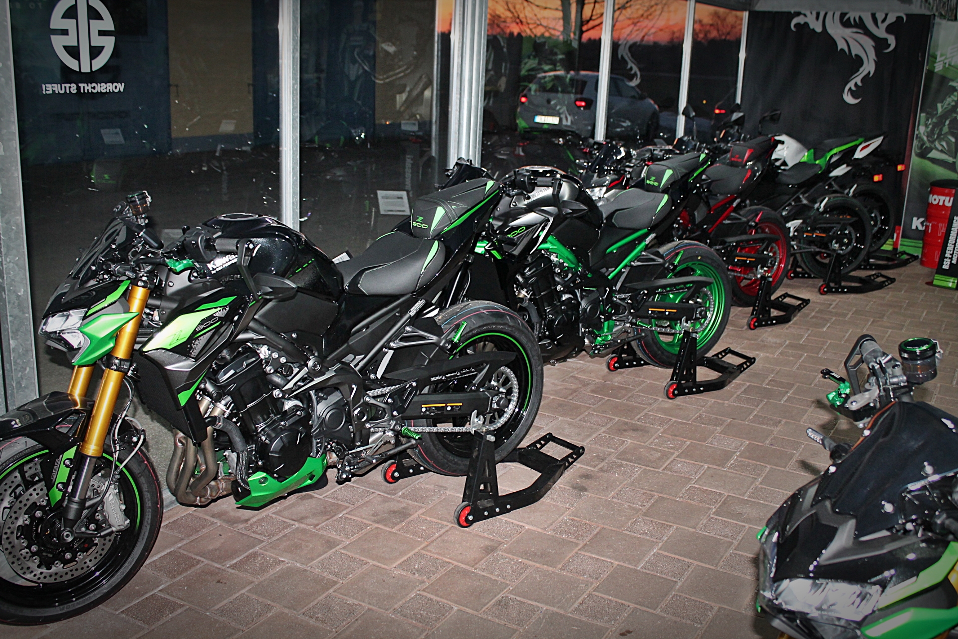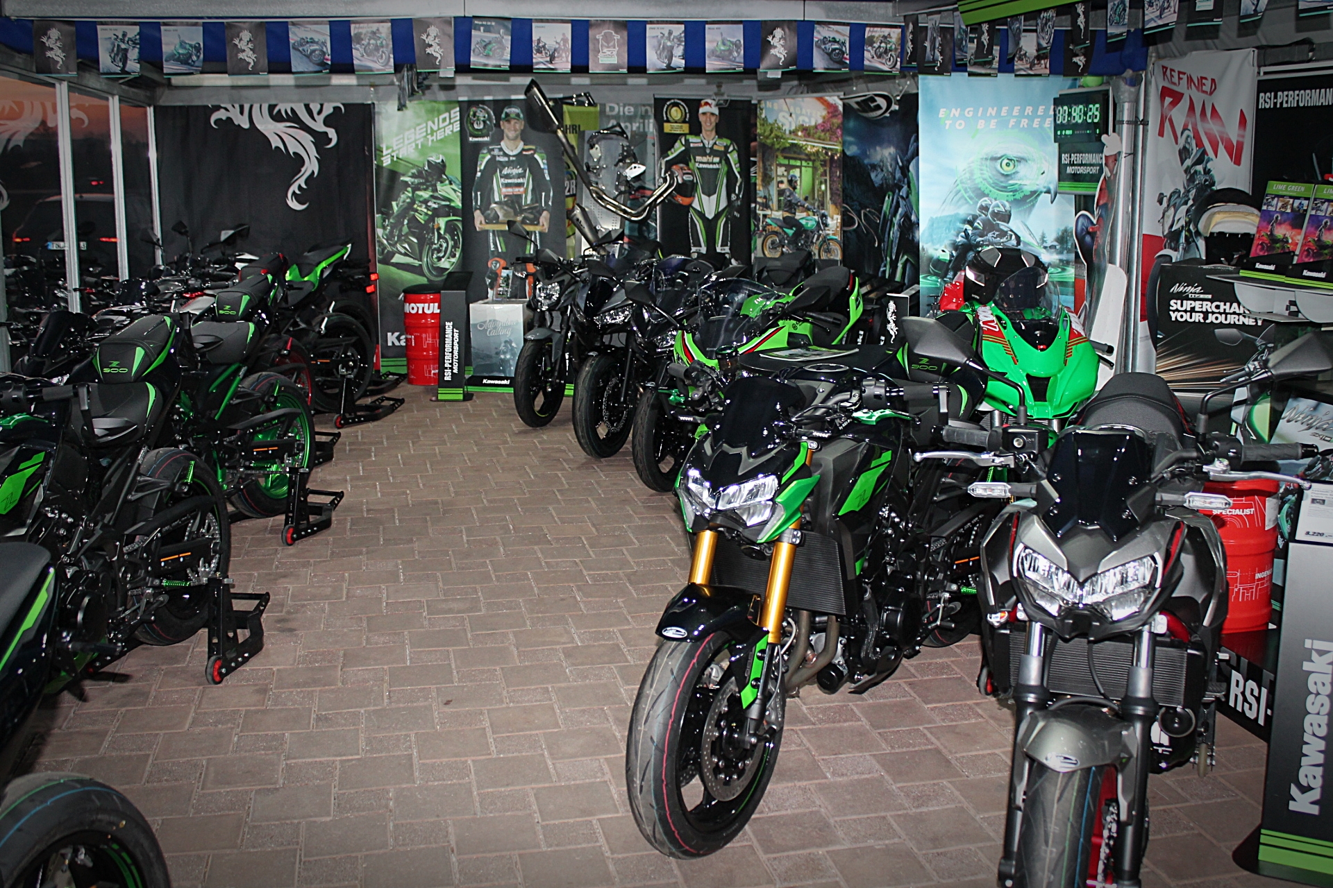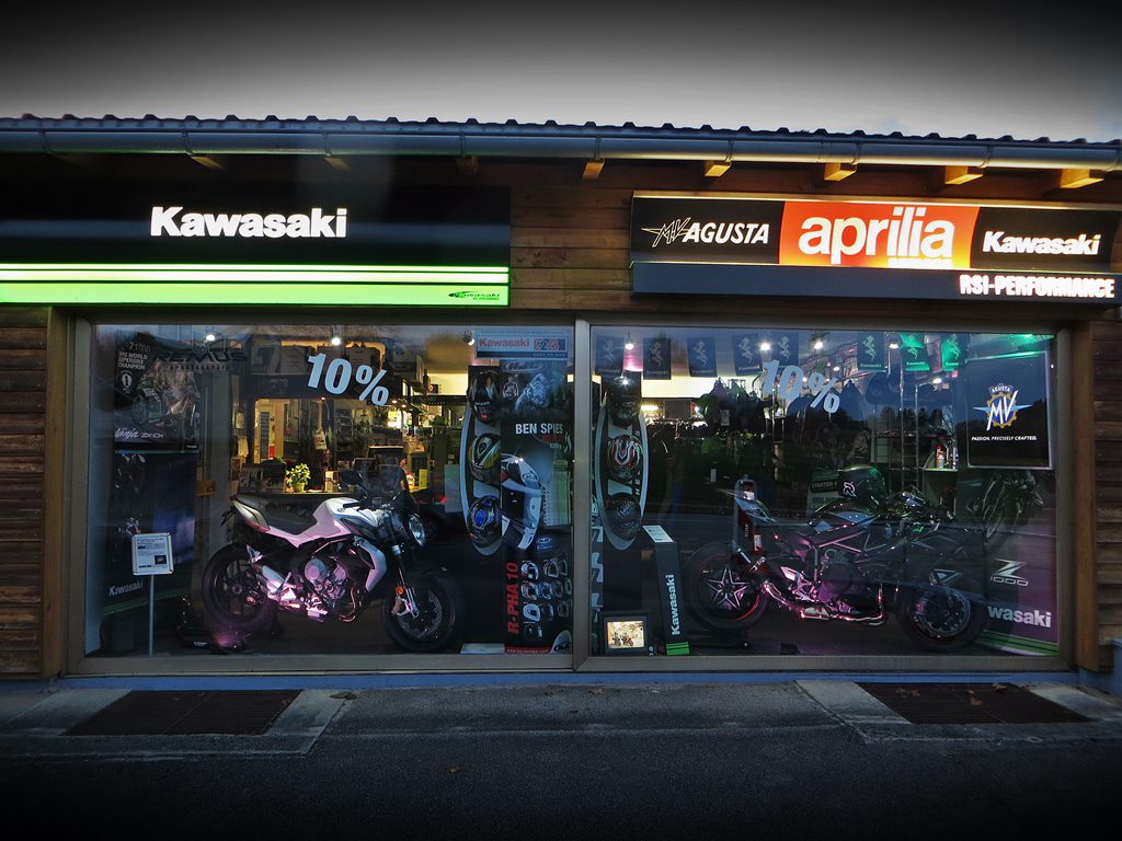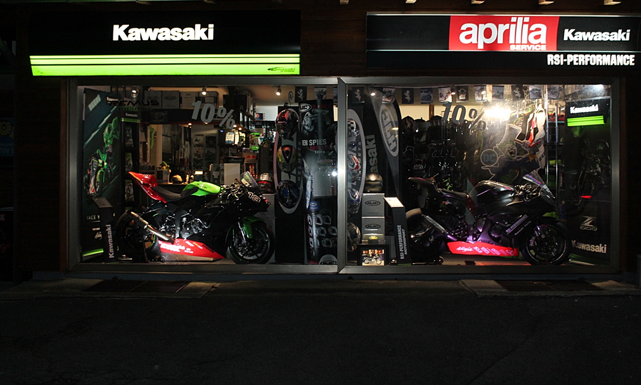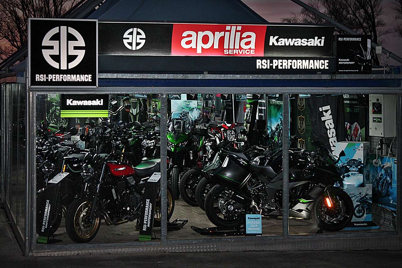 Im Laden finden Sie Zubehör von Kawasaki und weiteren Markenherstellern. Wir sind Vertriebspartner von HJC Helmen sowie Bekleidung von Germot Motorcycle Fashion. RSI Performance bietet Ihnen die komplette Palette der Kawasaki Straßenmotorräder sowie spezielle RSI-Performance Umbauten auf Kawasaki Basis . Zusäzlich sind wir freier Aprilia Service-Partner.