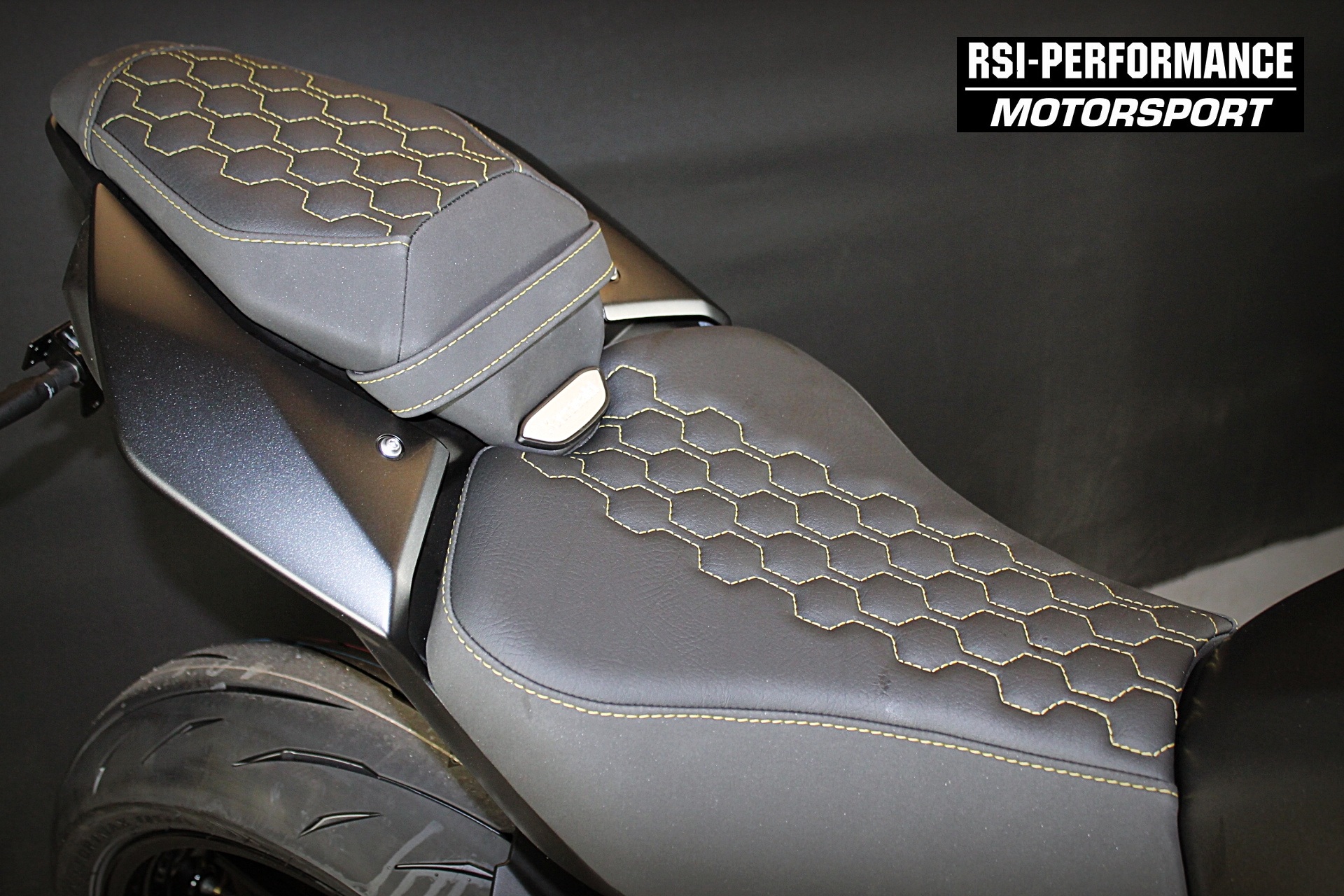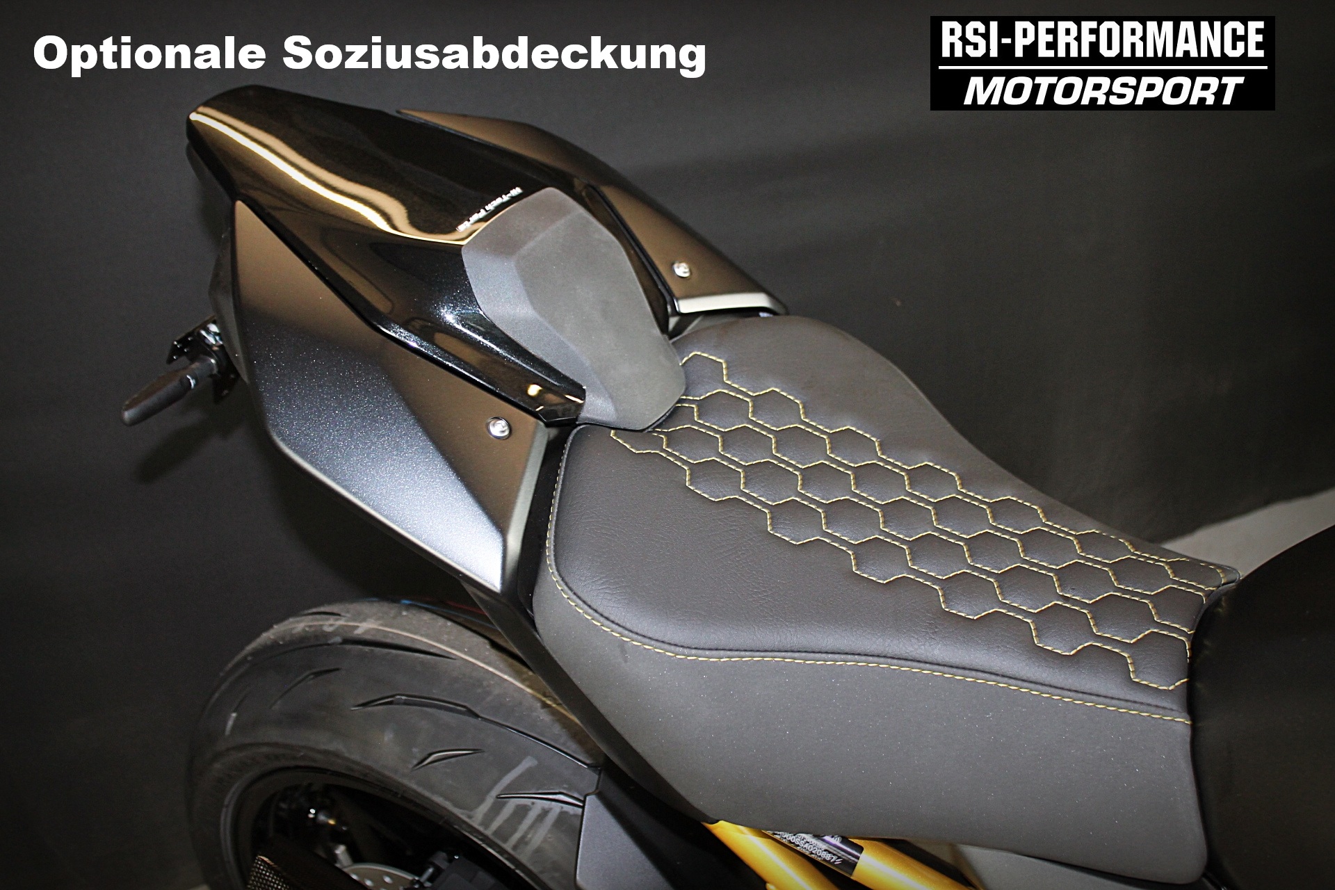 • RSI-SW Hexagon Design Comfort-Sitzbank vorne & hinten (hochwertig gesteppte Sitzbank in schwarz/gold)